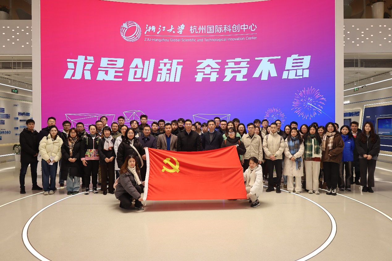 在浙江大学杭州国际科创中心,各位党员从规划布局、平台建设、人才引育、科研成果,以及教育、科技、人才一体化贯通建设等方面详细了解了科创中心情况,参观了学院牵头建设的土壤污染控制与创新修复创新工坊。